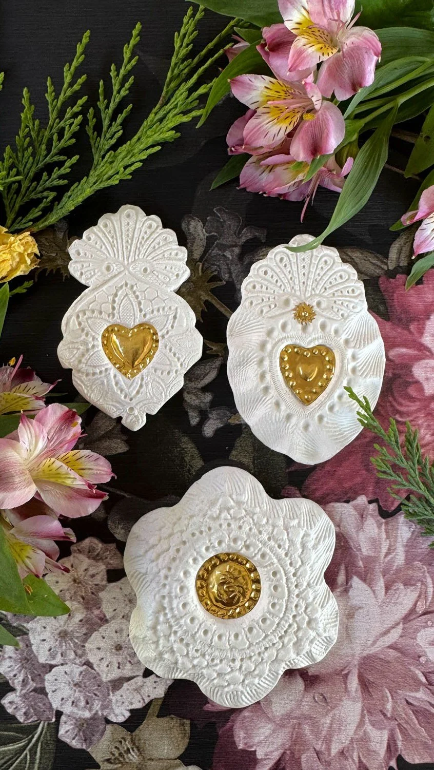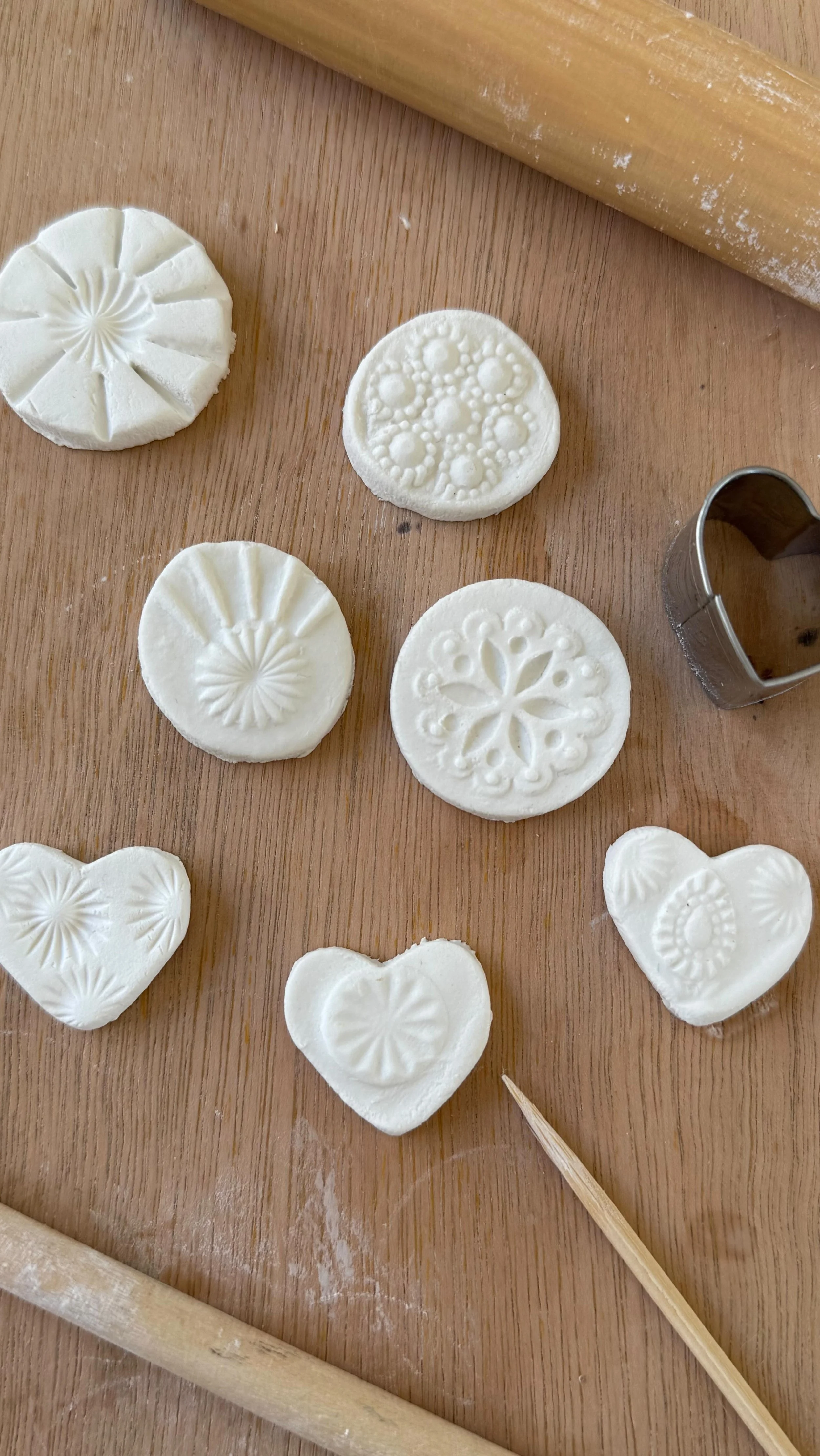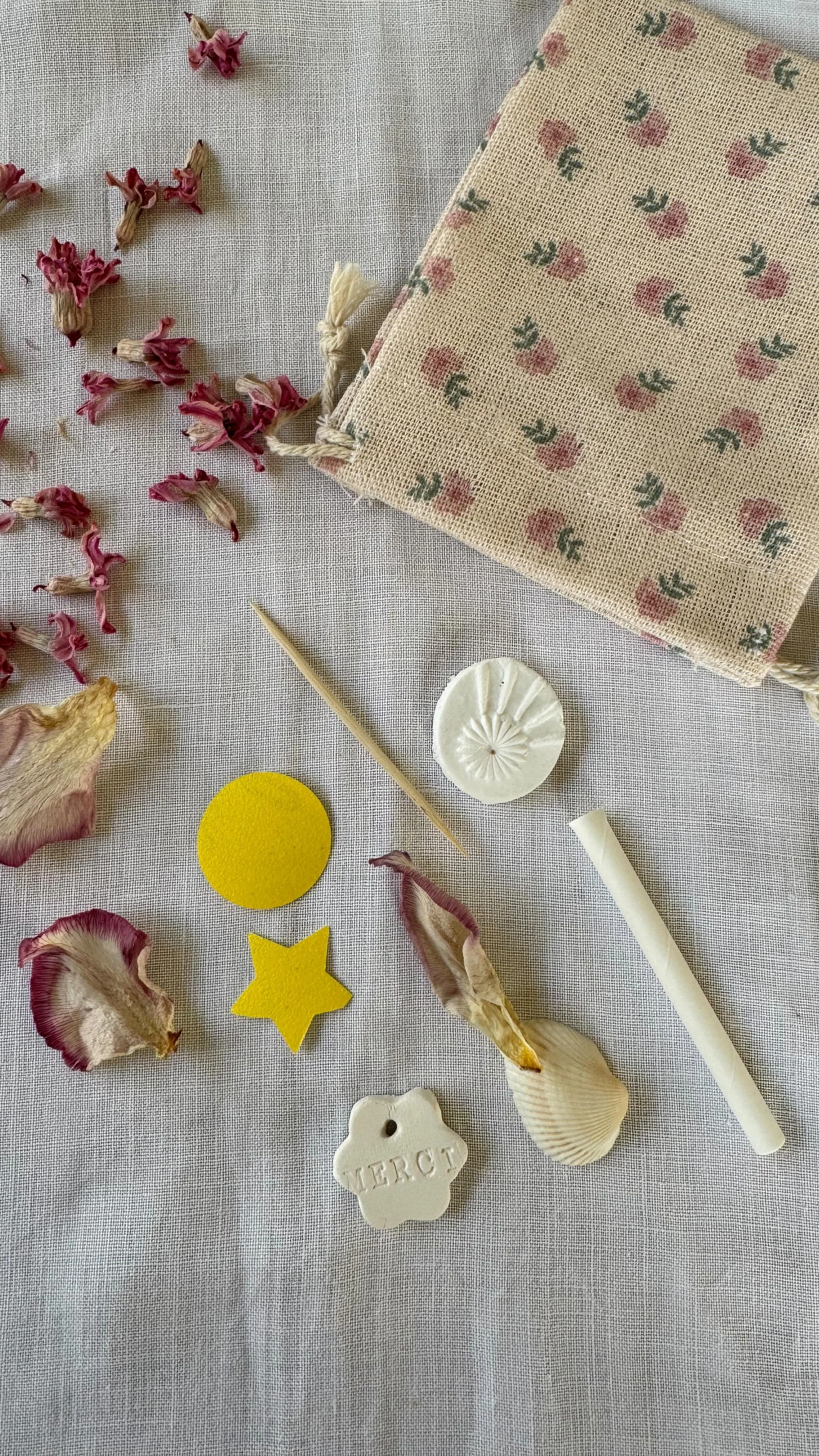 En petit groupe, je vous initierai au modelage, aux empreintes et aux finitions (peinture, dorure, vernis), avec des conseils concrets pour poursuivre la pratique chez vous. Vous repartirez avec votre création et un pochon contenant le nécessaire pour finaliser votre pièce une fois sèche.