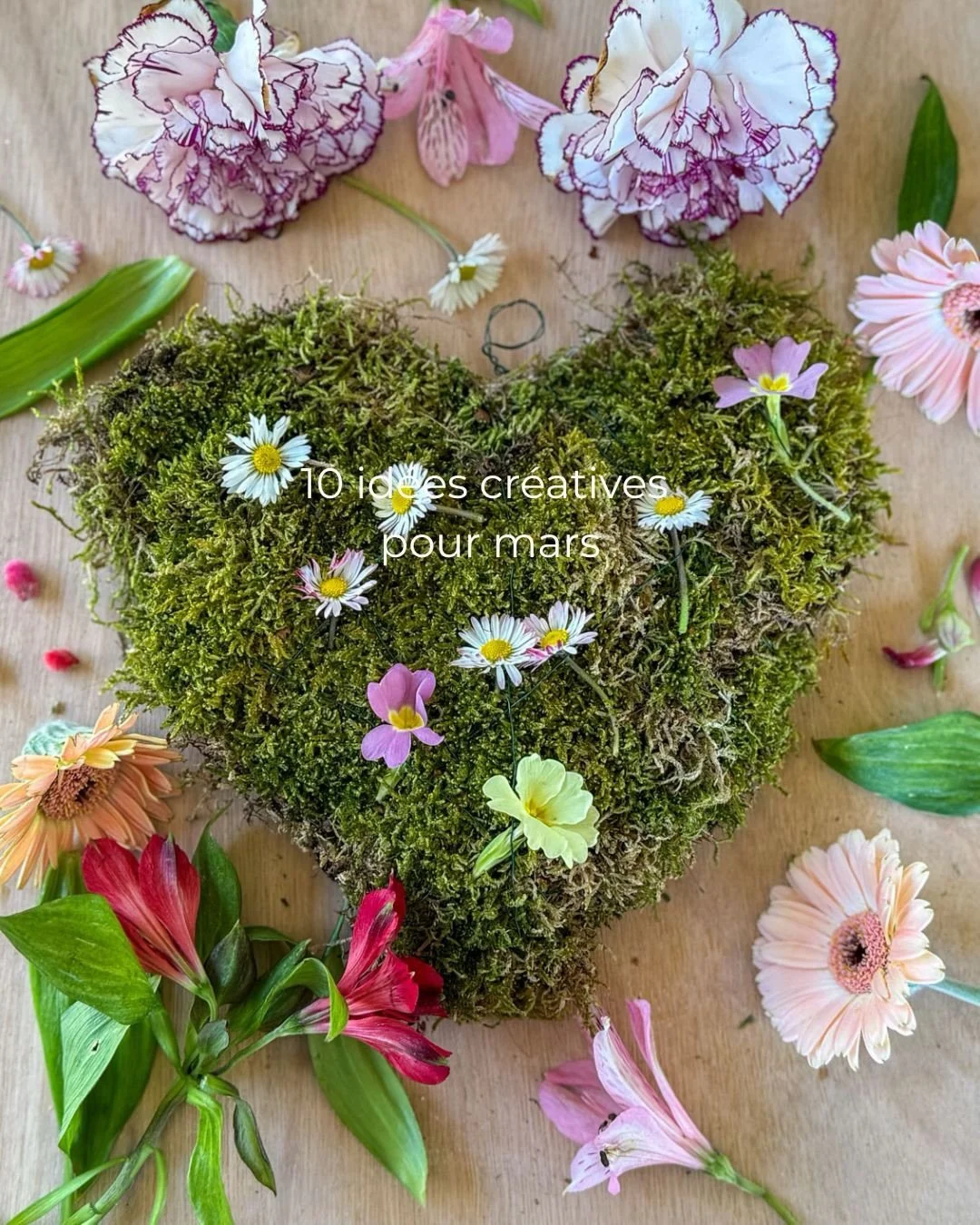 Mars entrouvre la porte du printemps. Primevères, pâquerettes et premiers bouquets nous invitent à ressortir les presses à fleurs, modeler des piques-fleurs en argile, recycler les pots en verre et préparer doucement Pâques.