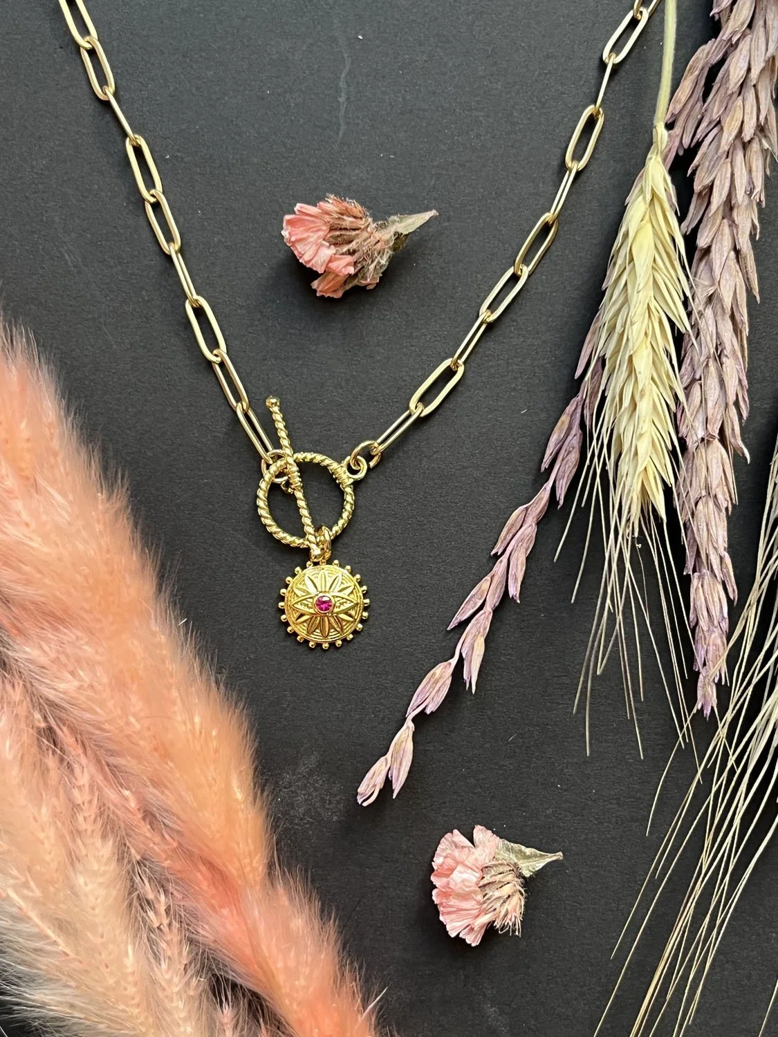 3- Enfilez le médaillon sur l’anneau du fermoir toggle.